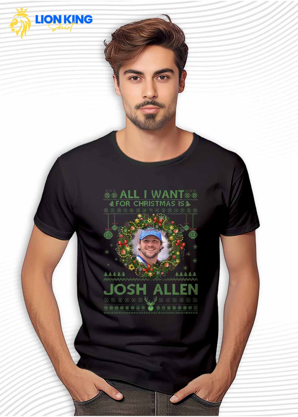 You do not need a huge closet refresh to make this work. Layer it under a flannel, hoodie, or jacket and you are ready for almost any plan. When you want your outfit to say you love Buffalo, and you love the holidays, All I Want For Christmas Is Josh Allen Shirt does the talking for you. End the search, back your quarterback, and pick it up now from LionKingShirt.