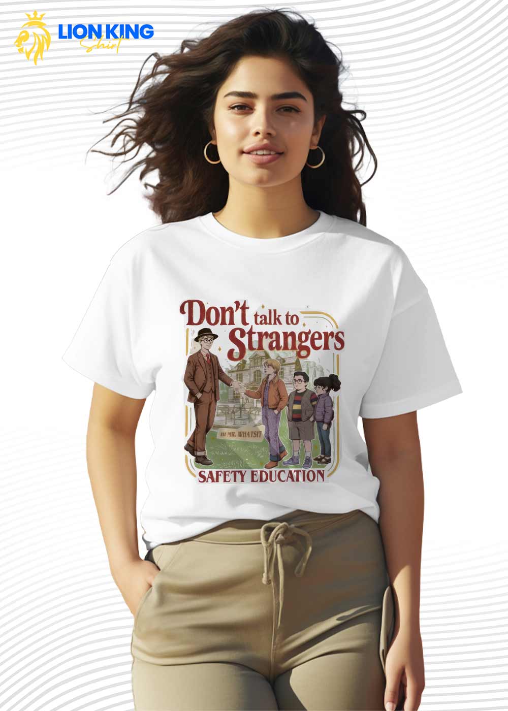 Don’t overthink it. Put it in your cart and let the design do the talking. If you want a retro PSA parody that’s readable and bold, grab the Don't Talk To Strangers Shirt from LionKingShirt right now–before you talk yourself out of it.