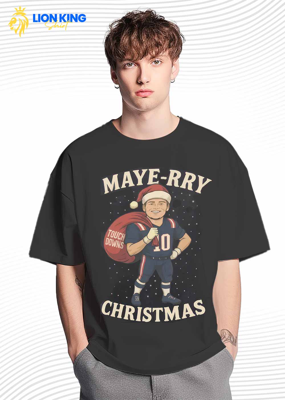 Stock vanishes quicker than both Foxboro Fridays in the frost. Snag your Drake Maye-RRY Christmas Shirt today, outrun the mail rush, and stride into the fray sporting the campaign's boldest battle cry. Hit purchase, summon the posse, and let LionKingShirt freight the festivity right to your pad.