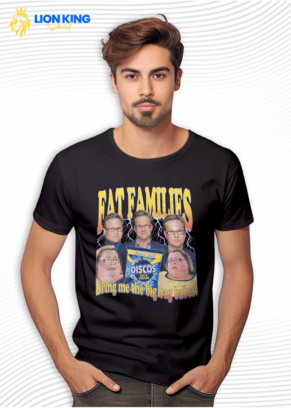 This is the kind of joke you hear once and cannot unhear. Fat Families Bring Me The Big Bag Babes Shirt catches that chaotic TV moment in one bold graphic, and LionKingShirt turns it into something you can wear straight to the pub. If you love UK reality TV memes and British crisps nostalgia, this one is for you.