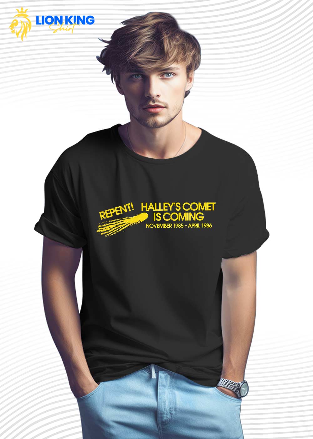 Now, the real hook: the Halley's Comet Is Coming Shirt goes beyond solo wear. It's a sneaky perfect pick for the packrats stacking obscure relics or 80s space oddities in their closets. Scoop one up from LionKingShirt pronto, slip it on, and let that eerie alert hang over you–before the heavens decide to stir again out there in the black.