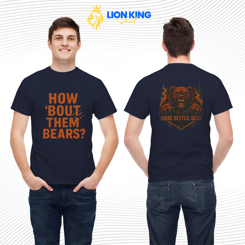 Kickoff hits and Sunday turns into football. If that’s your routine, this fits right in. The How 'Bout Them Bears Shirt puts the chant up front, then follows with a flame-bear back that gets noticed when you move through a crowd. LionKingShirt keeps it simple: words on the front, energy on the back. Wear it, post it, and let your crew jump in.
