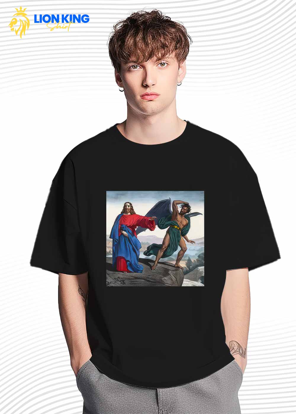 LionKingShirt brings sacred art into daily life with the Jesus Satan Tempts Christ On The Mountain Shirt. This graphic nods to Matthew 4:8-11, the instant the tempter dangles the world before the Son of God atop a dizzying summit. Need a faith piece that doubles as museum-grade imagery? Start here–order today.