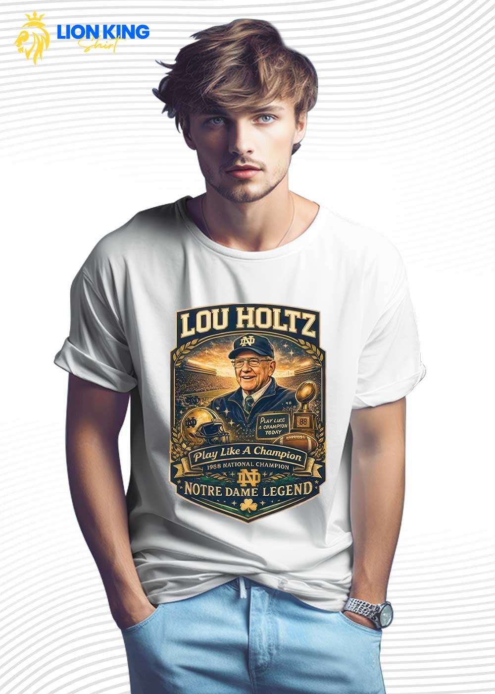 Certain shirts end up tucked away after a few wears. Not this one, though. It earns a permanent spot in the lineup owing to its genuine significance. Should you seek artwork that salutes a legendary figure, an enduring squad, and a victorious outlook, dont delay. Snatch the Lou Holtz Notre Dame Legend Play Like A Champion Shirt via LionKingShirt and flaunt your Fighting Irish loyalty with genuine zest right away.