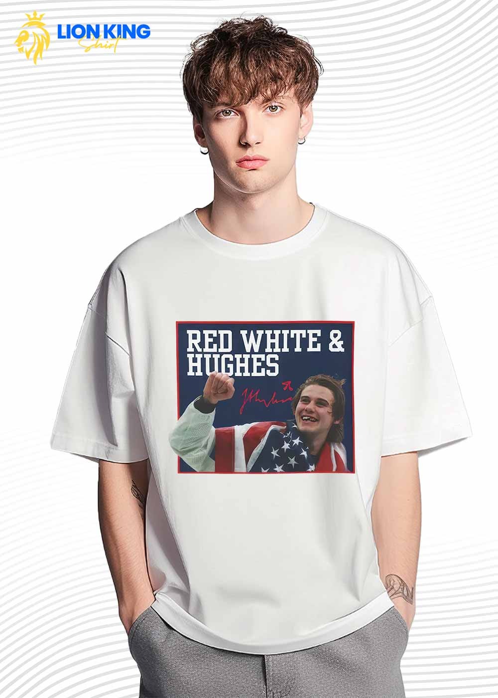 When a final stretches into overtime, each shift hangs like a coin toss in the air. The Red, White & Hughes Hockey Shirt captures that raw edge, turning it into gear you slap on and flaunt. LionKingShirt crafted this piece for die-hards chasing the golden goal, that explosive fist pump, and the roar exploding when the puck finally buries itself in the net.