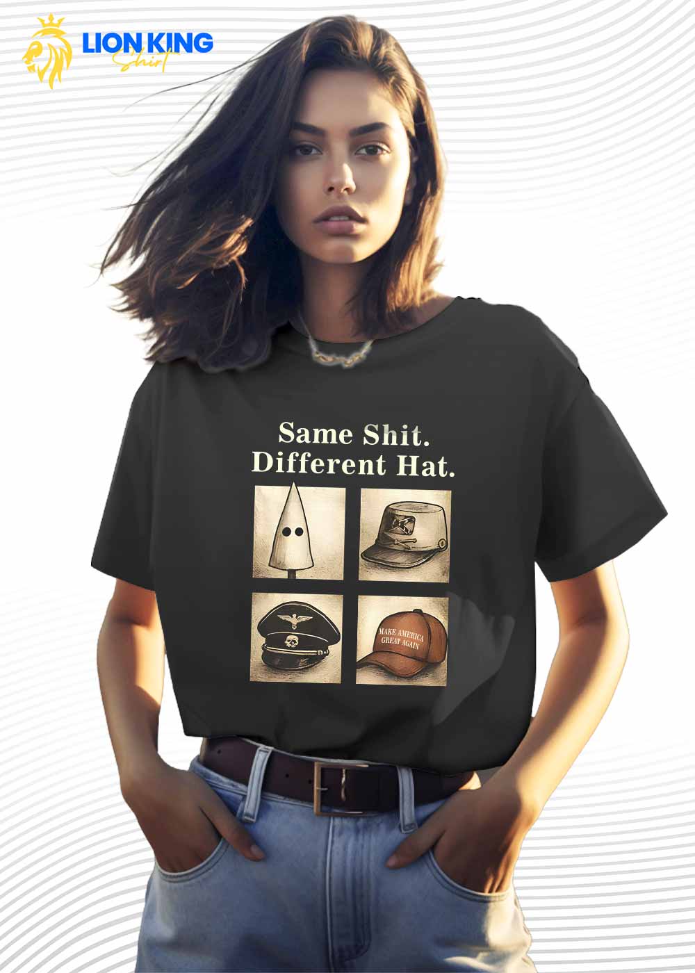 Most tees end up collecting dust in the back of your closet. A rare few turn heads and spark conversations. This one? It speaks volumes before you even open your mouth. The Same Shit Different Hat Shirt from LionKingShirt doesn't try to be nice. It just says what many people think but don't say out loud.