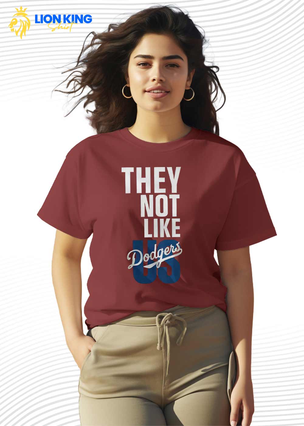 The They Not Like Us Dodgers Shirt leans into stacked type that reads quickly in a crowd and sits clean on camera. Picture crisp fronts, pared lines, and a city-forward stance–perfect for Dodgers streetwear stories or a quick reel outside the stadium before first pitch.