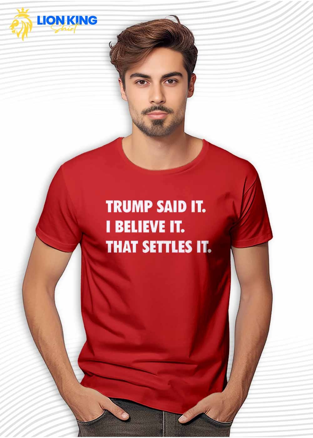 Some people want quiet style. Others want a spark. This design belongs to the second group. It is clean, easy to read, and built to start talk at cookouts, watch parties, road trips, and family get togethers. If you want political apparel that feels sharp, memorable, and ready for a reaction, go get Trump Said It I Believe It That Settles It Shirt from LionKingShirt and wear your view without apology.