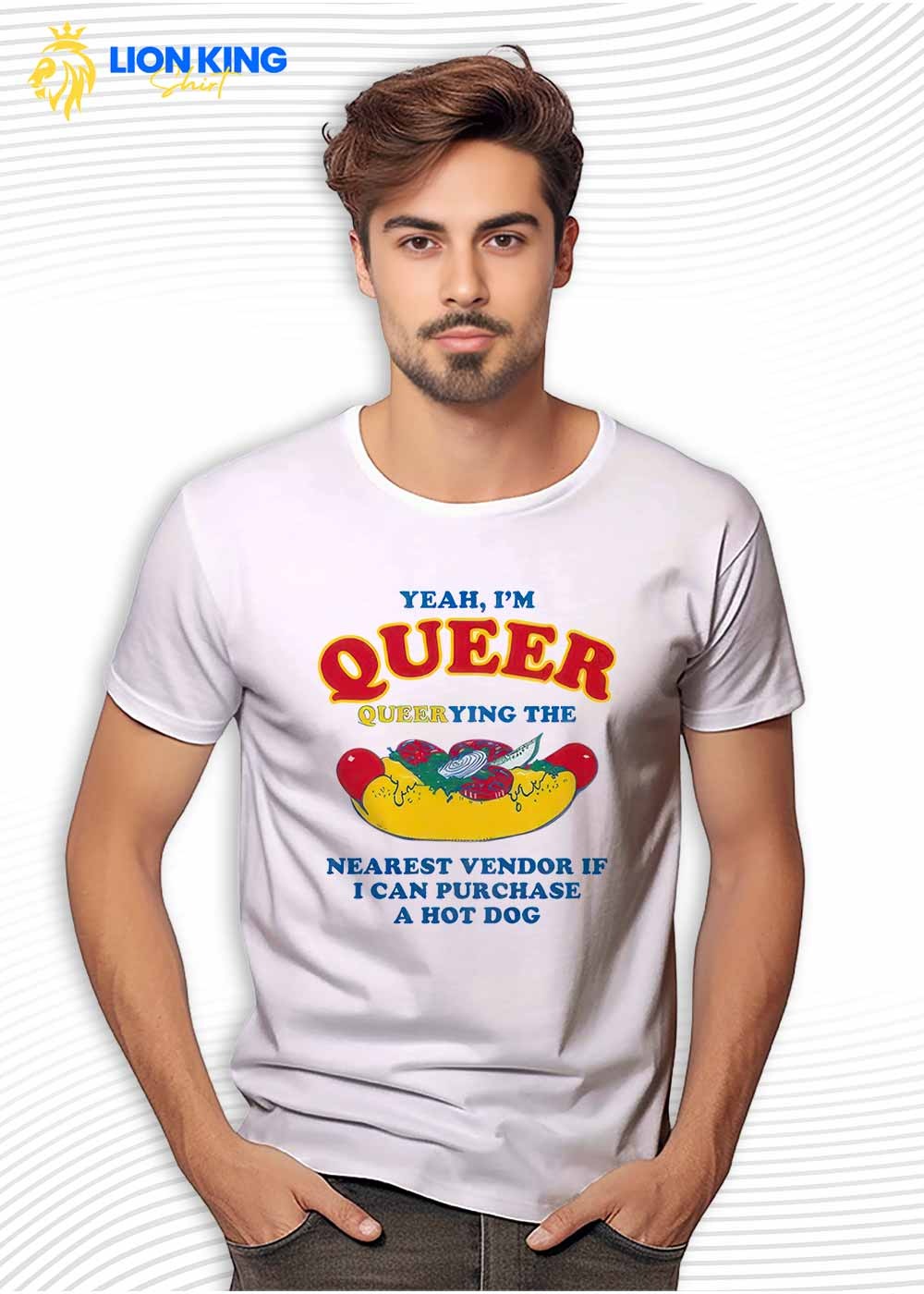 If you like a queer hot dog shirt with a joke behind it, Yeah I’m Queer Queerying The Nearest Vendor If I Can Purchase A Hot Dog Shirt has charm. It turns queer humor and a hot dog graphic into something easy to wear. You can find it at LionKingShirt.